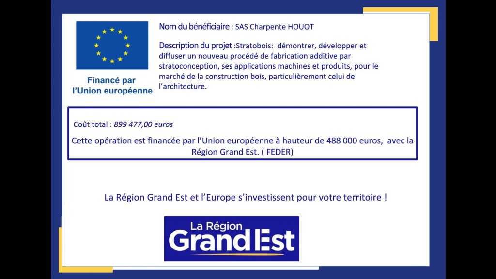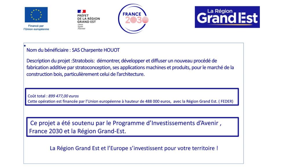 L’objectif de ce projet est de démontrer, développer et diffuser un nouveau procédé de fabrication additive par stratoconception, ses applications machines et produits, pour le marché de la construction bois, en particulier celui de l’architecture.